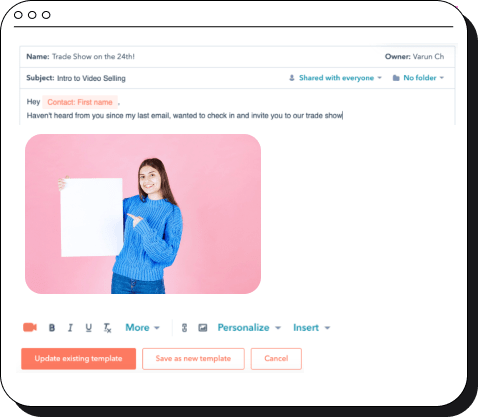 Videos selling can be a great sales hack in every step of your sales journey. In cold outreach, personalized video emails can skyrocket your outreach response rates. As the prospect moves ahead in the buying process, videos with personalized sales page can help account executives speed up the sales process and win more deals.